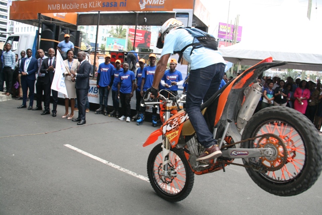 Waenedsha pikipiki wakionesha michezo mbalimbali kwa kutumia pikipiki kubwa katika uzinduzi huo.