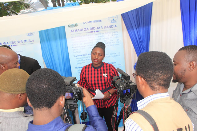Afisa Uhusiano na Mawasiliano ya Umma wa FCC, Adefrida Ilomo akizungumza na waandishi wa habari.