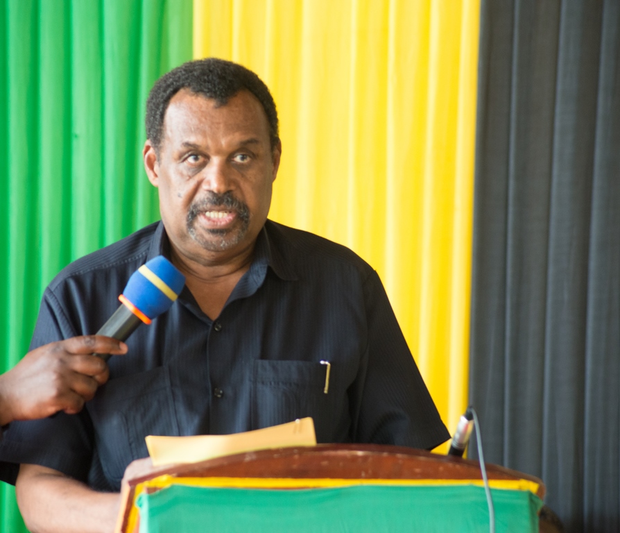 Mkuu wa Mkoa wa Lindi, Mhe. Godfrey Zambi akieleza jambo wakati wa Kongamano hilo la Vijana Kitaifa. Kulia ni Waziri wa Nchi, Ofisi ya Waziri Mkuu anayeshughulikia Sera, Bunge, Kazi, Vijana, Ajira na Wenye Ulemavu Mhe. Jenista Mhagama
