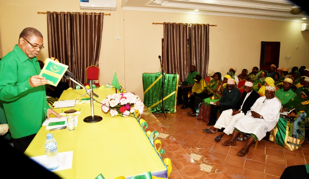 NAIBU Katibu Mkuu wa Chama Cha Mapinduzi Zanzibar.Dr. Abdalla Juma Mabodi akizungumza na Wazee wa CCM Wilaya ya Wete Pemba kabla ya kumkaribisha Makamu Mwenyekiti wa CCM Zanzibar na Rais wa Zanzibar na Mwenyekiti wa Baraza la Mapinduzi.Mhe.Dk. Ali Mohamed Shein,kuzungumza na Wazee hao katika ukumbi wa Jamuhuri Wete Pemba.(Picha na Ikulu)
