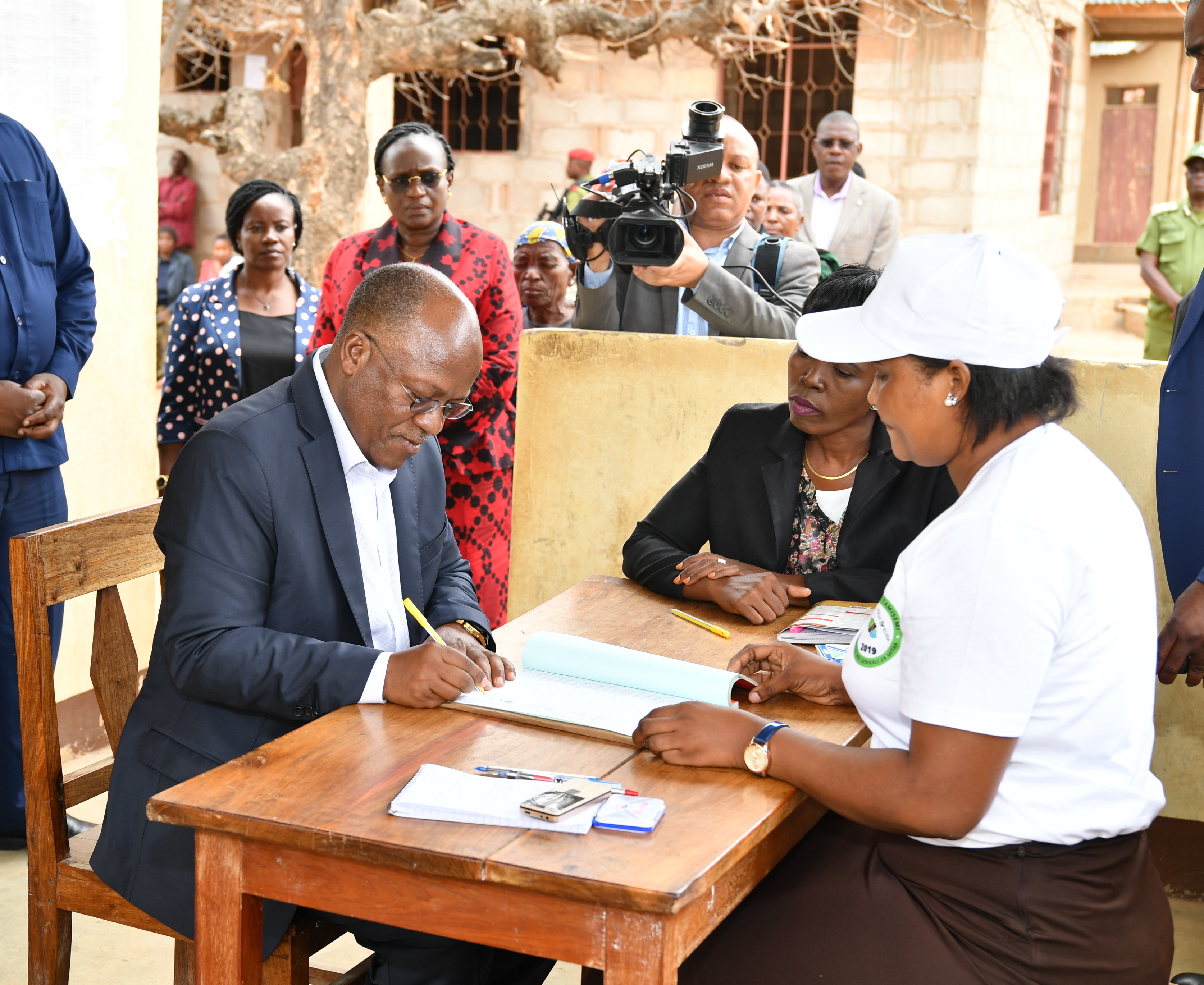 Mheshimiwa Dkt. John Pombe Magufuli akijiandikisha katika daftari la
