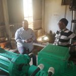Rais wa Jamhuri ya Muungano wa Tanzania Dkt. John Pombe Magufuli akisalimiana na mmoja wa wafanyakazi wa Uwanja wa hedge wa Mtwara Bw. Jackson Elia baada ya kushuka kutoka katika ndege aina ya Bombadier ya ATCL mara tu alipowasili tayari kuelekea mkoani Lindi kuhudhuria sherehe za kilele cha Mbio za Mwenge wa Uhuru na kumbukumbu ya Miaka 20 ya Kifo cha Baba wa Taifa Mwalimu Julius Nyerere