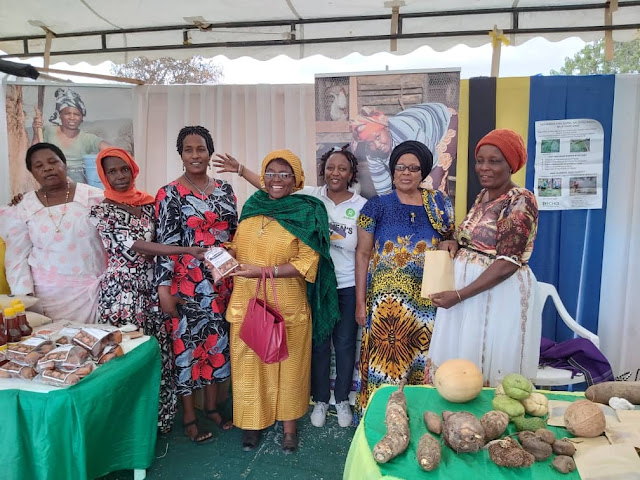 Wakina mama Shujaa wa chakula kutoka mikoa mbalimbali walioshiriki maadhimisho ya siku ya chakula duniani wakiwa katika picha ya pamoja na Mkuu wa Mkoa wa Singida Dkt. Rehema Nchimbi.
