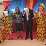 Dkt.Nchimbi akipokea zawadi ya viazi lishe vinavyozalishwa na wakulima wadogo wadogo kutoka Mbongwe.