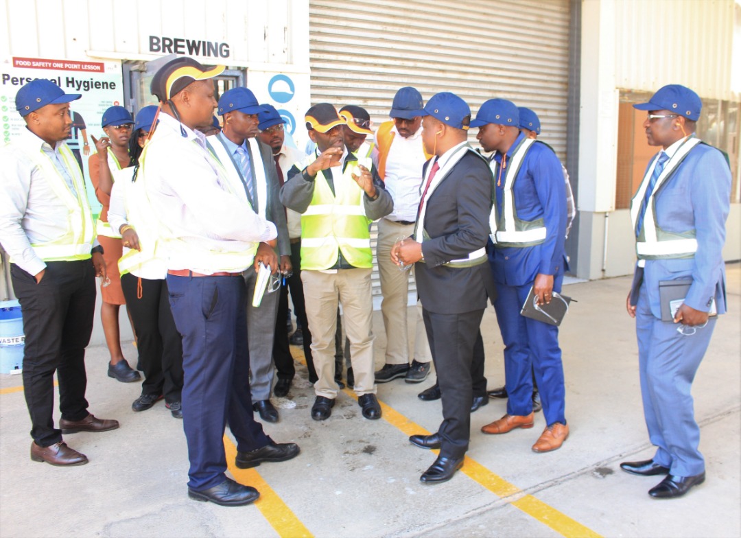 Ujumbe wa Kamishna Mkuu wa TRA ukitembezwa katika vitengo mbalimbali vya uzalishaji wa Bia katika Kiwanda cha TBL cha Mbeya.