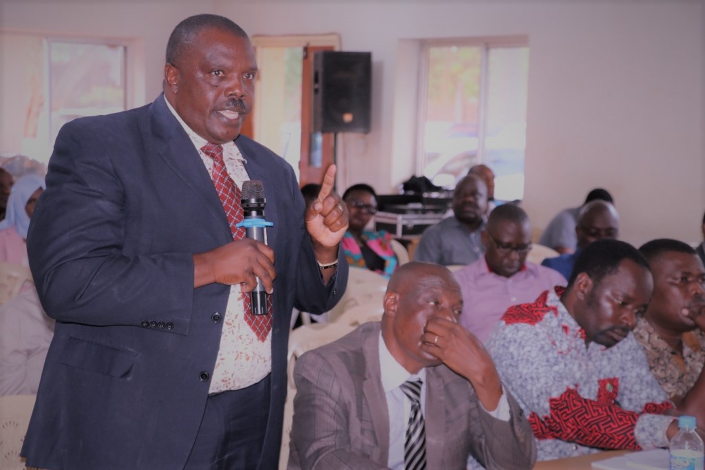 Diwani wa Kata ya Busonzo ambaye pia ni Mwenyekiti wa Halmashauri ya Wilaya Bukombe, Safari Mayala (CCM) akichangia hoja kwenye kikao hicho.