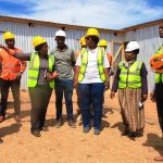 Katibu Mkuu wa Jumuiya ya Tawala za Mitaa chini(ALAT), Elirehema Kaaya ,akiendelea na ukaguzi wa maendeleo ya mradi unaoendelea wa uboreshaji kituo cha Kilimo,Mawasiliano na Taaluma cha mafunzo ya kilimo Kibakwe wilayani humo.