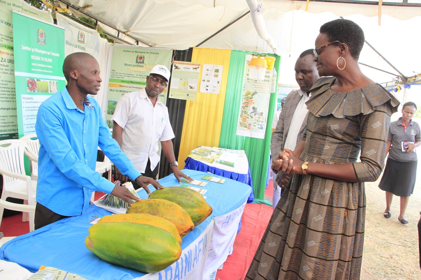 Dkt. Tulia akipata maelezo ya kilimo cha mapapai.