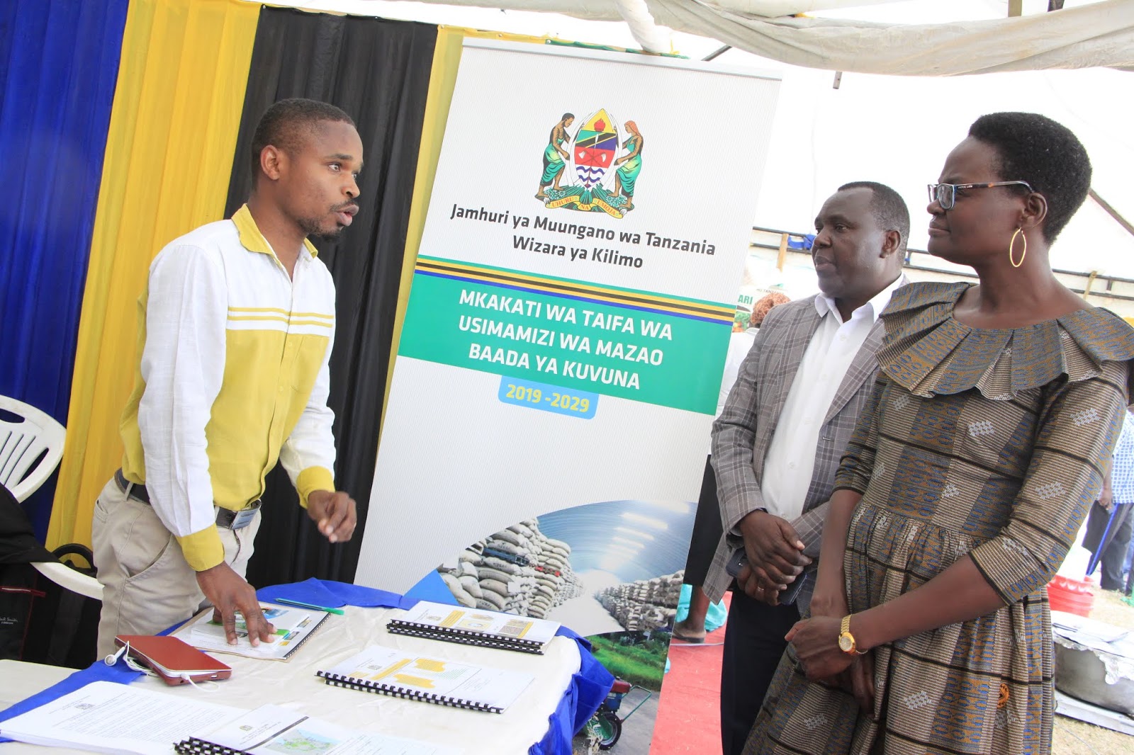 Mratibu wa Mradi wa Tanipac Wizara ya Kilimo, Clepin Josephat akimurleza Dkt.Tulia Ackson shughuli wanazozifanya.
