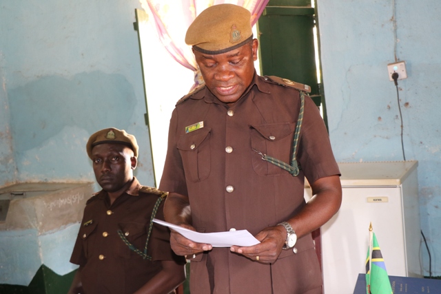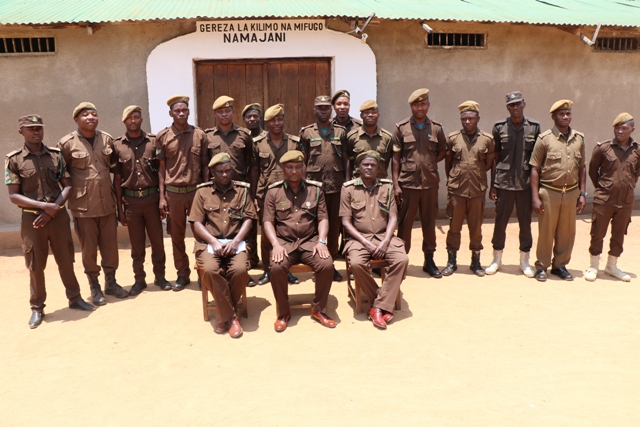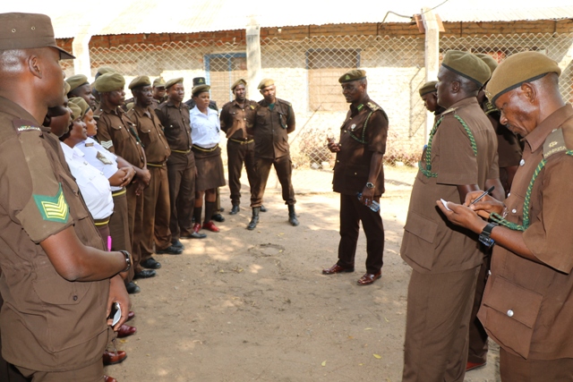 Baadhi ya askari wa Gereza Namajani wakimsikiliza Kamishna Jenerali wa Magereza nchini, Phaustine Kasike.