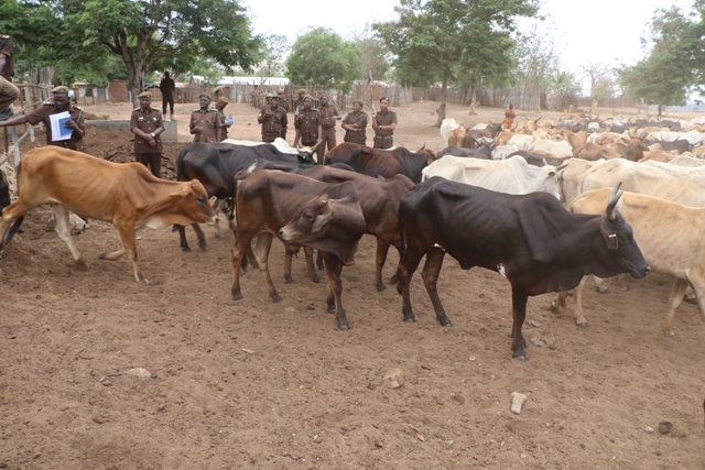 Kamishna Jenerali wa Magereza nchini, Phaustine Kasike(wa pili toka kushoto) akikagua Mifugo katika Gereza Namajani lililopo Wilayani Masasi, leo Oktoba 16, 2019 alipotembelea katika ziara yake ya kikazi Mkoani Mtwara.