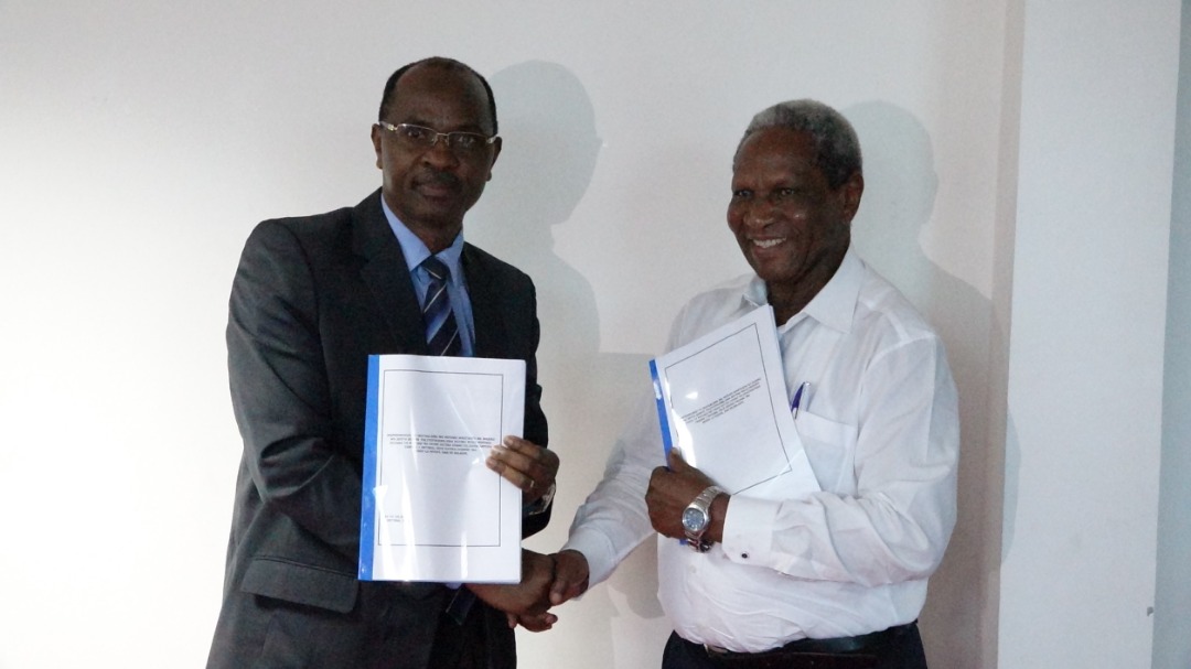 Katibu Mkuu Wizara ya Mifugo na Uvuvi (Mifugo) Prof. Elisante Ole Gabriel (Kushoto), akipokea ripoti yenye mapendekezo sita ya namna ya kuboresha zaidi sekta ya mifugo nchini kutoka kwa Mwenyekiti wa kamati Teule