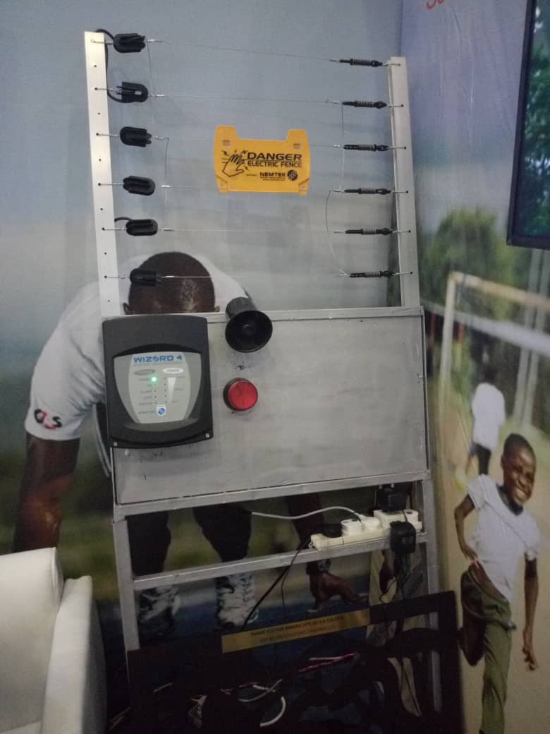 Mashine ya Ulinzi ya Electric Fence Security ya kampuni ya Ulinzi ya G4S ikiwa kama alama kuonesha ni namna gani inafanya kazi.