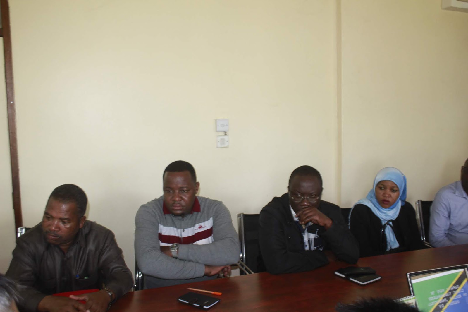 VIONGOZI mbalimbali wakifuatilia mazungumzo hayo kushoto ni Mkuu wa wilaya ya Tanga Thobias Mwilapwa na aliyevaa miwani kulia ni Mkurugenzi wa Jiji la Tanga Daudi Mayeji na Katibu Tawala wa wilaya ya Tanga (DAS) faidha Salim