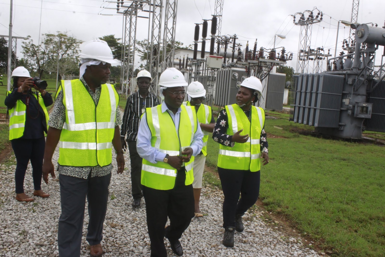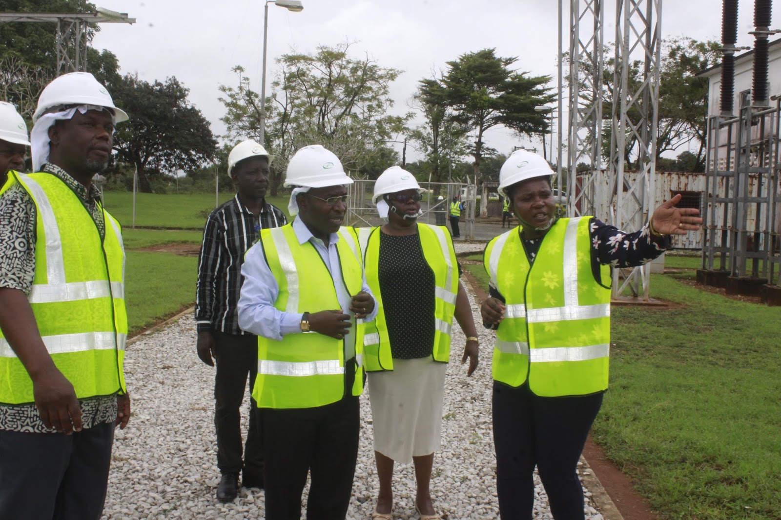 Mhandisi Mkuu wa Kituo cha Kuzalisha Umeme cha Pangani Hydro System Jackline Mtolela kulia akimuonyesha kitu Waziri wa Nishati Dkt Medard Kalemani kushoto wakati wa ziara yake kwenye kituo hicho
