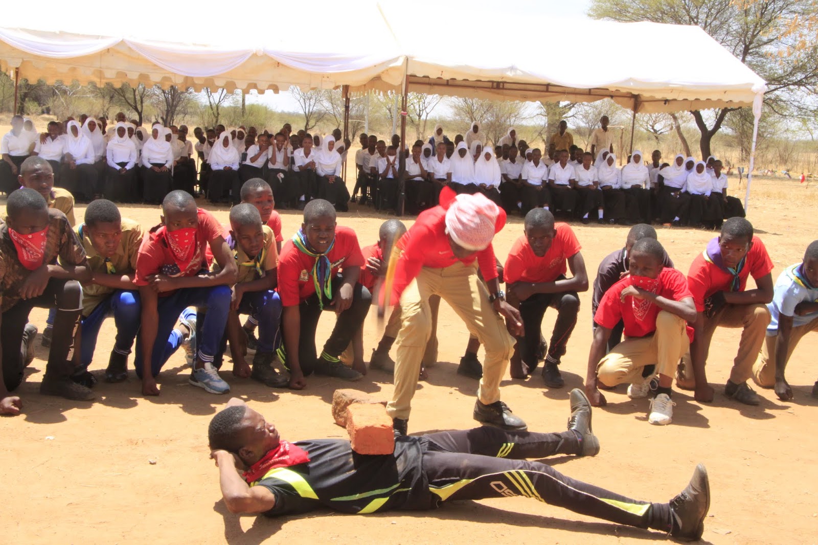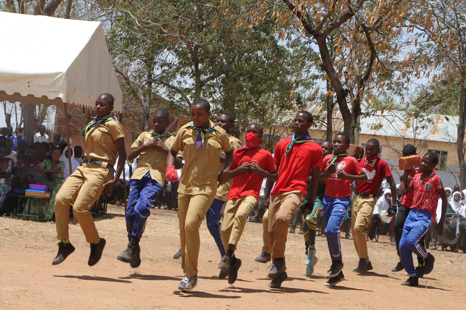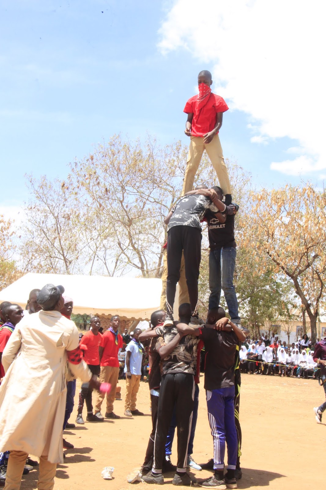 Vijana wa Skauti wa Shule hiyo wakionesha sarakasi.