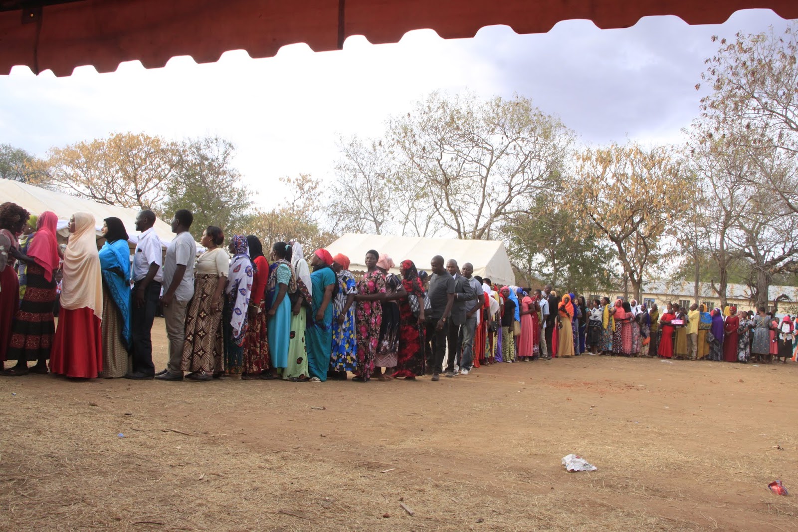 Wazazi wakiwa katika foleni ya kwenda kutoa mchango wa ujenzi wa bwalo la shule hiyo baada ya kuhamasishwa na Mbunge Mattembe.
