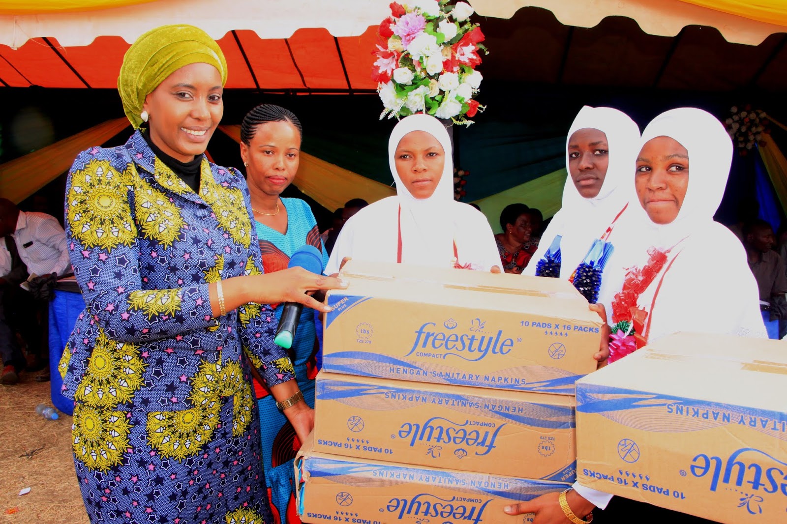 Hapa Mattembe akikabidhi taulo kwa ajili ya watoto wa kike wa shule hiyo.