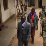 Naibu Katibu Mkuu Wizara ya Maji, Mhandisi Anthony Sanga (kushoto) mara baada ya kumkabidhi Ofisi Kaimu Mkurugenzi Mtendaji wa MWAUWASA, Mhandisi Leonard Msenyele. Awali Mhandisi Sanga alikuwa Mkurugenzi Mtendaji wa MWAUWASA na Mhandisi Msenyele alikuwa Meneja Miradi MWAUWASA.
