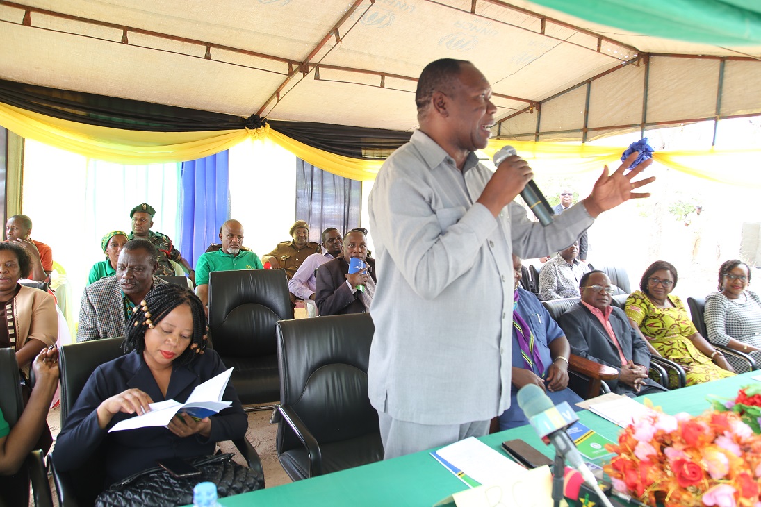 Mkuu wa Mkoa wa Tabora Aggrey Mwanri akitoa salama fupi jana wakati sherehe fupi za uzinduzi wa mradi wa kuziunganisha shule 14 umma za wilayani Urambo Mkoa wa Tabora katika mtandao wa tovuti.