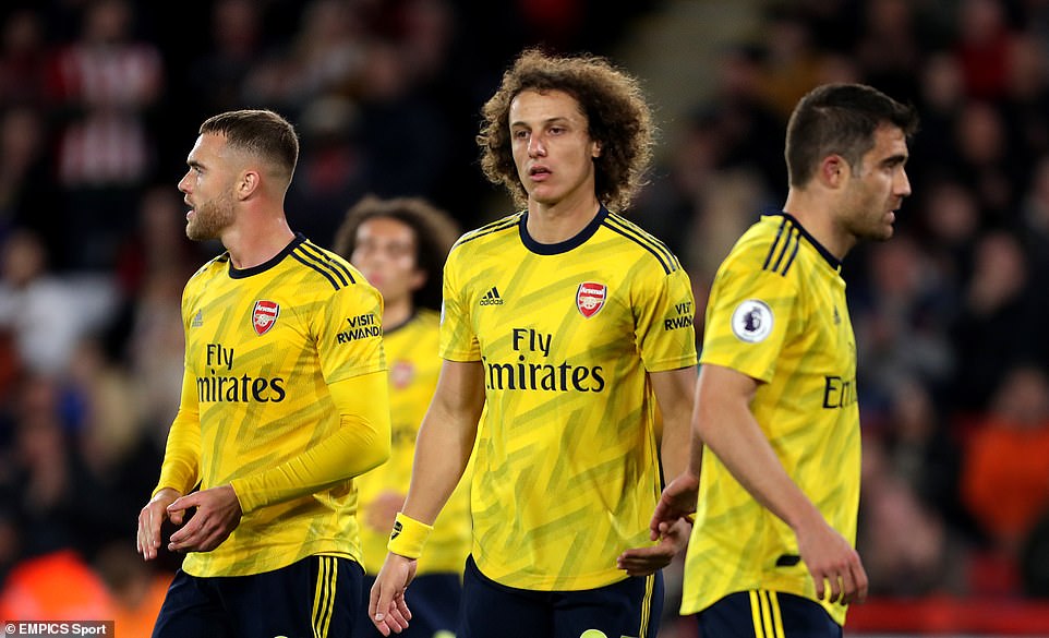 Wachezaji wa Arsenal, Calum Chambers, David Luiz na Sokratis Papastathopoulos wakiwa wanyonge baada ya kuruhusu bao la Lys Mousset dakika ya 30 wakifungwa 1-0 na wenyeji, Sheffield United katika mchezo wa Ligi Kuu ya England usiku wa jana Uwanja wa Bramall Lane mjini Sheffield PICHA ZAIDI SOMA HAPA