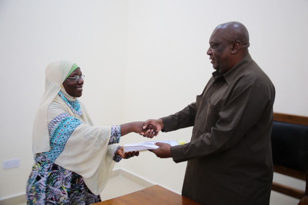 (kulia), Septemba 16, 2019 na ilipewa hadidu za rejea 13 kwa ajili ya kufanikisha kazi hiyo. Kushoto ni Mwenyekiti wa Kamati hiyo, Wamoja Ayubu. Picha na Wizara ya Mambo ya Ndani ya Nchi.