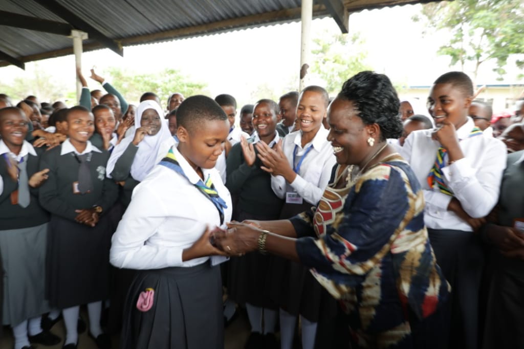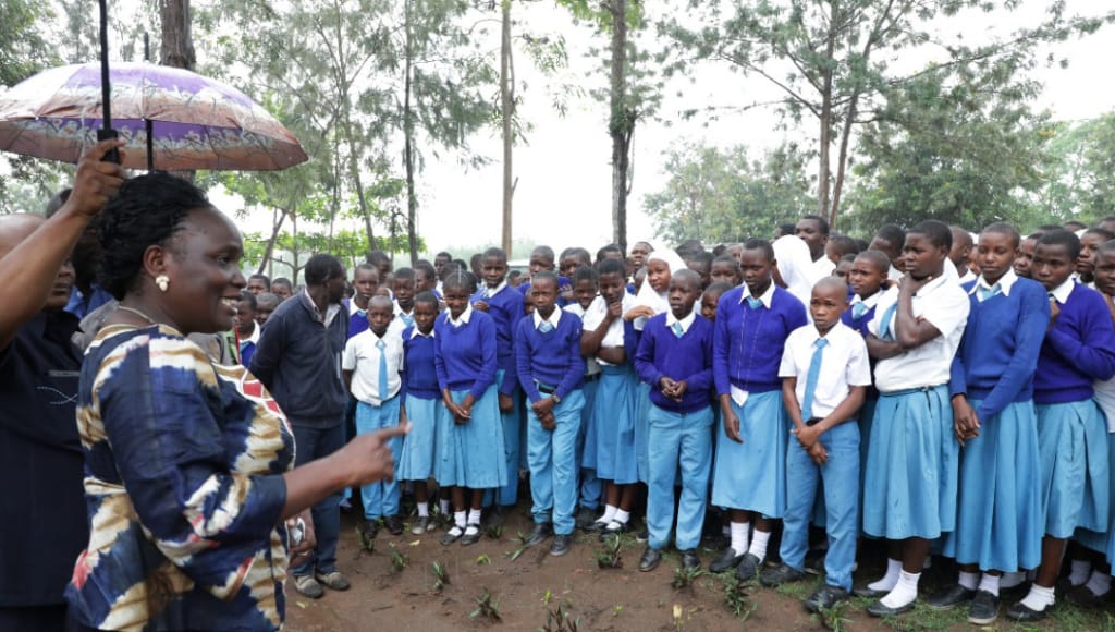 Waziri wa Elimu, Sayansi na Teknolojia Profesa Joyce Ndalichako akizungumza na wanafunzi wa shule ya sekondari Jikombe iliyopo wilayani Chato wakati alipofika shuleni hapo kukagua miundombinu ya shule.