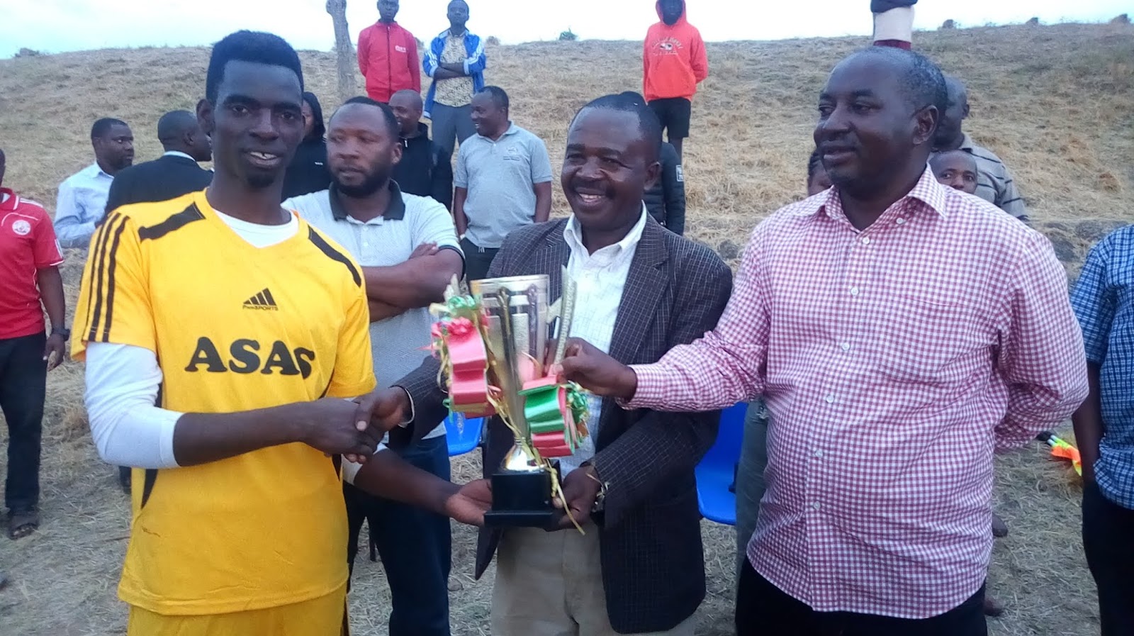 Mbunge wa jimbo la Kilolo Vennance Mwamoto pamoja mwenyekiti wa chama cha mpira wa miguu mkoa wa Iringa Cyprian Kuyava wakimkabidhi kombe la ubingwa wa FA mkoa wa Iringa nahodha wa timu ya Young Stars baada ya kuwafunga timu ya mbega mwekundu goli 5-1 mchezo uliochezwa katika uwanja wa mkwawa