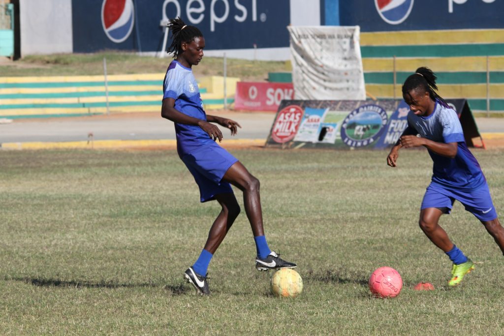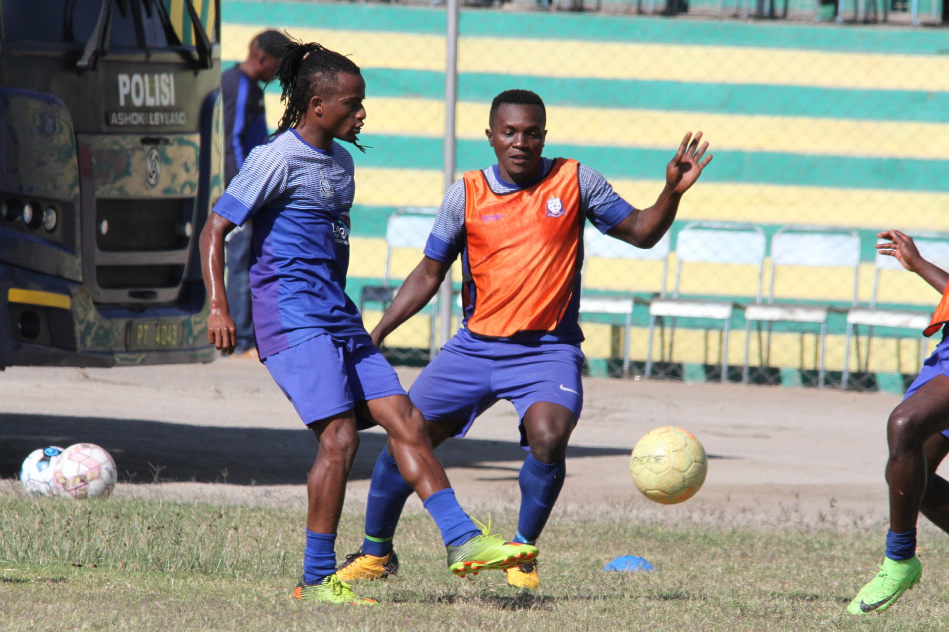 Wachezaji wa Polisi Tanzania Yassin Mustapha (kushoto) na Mohamed Mkopi wakiwa katika mazoezi uwanja wa Samora Iringa kujiandaa na mchezo wa ligi kuu ya Vodacom Tanzania dhidi ya Lipuli utakaochezwa kesho jumatano katika uwanja huo.