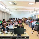 Spika wa Bunge, Mhe. Job Ndugai (katikati) akiimba wimbo wa Taifa wa Tanzania wakati wa hafla ya uzinduzi wa Kanuni za Kudumu za Bunge la Kenya za lugha ya Kiswahili na taarifa za Mwaka za Utendaji Kazi wa Kamati tukio lililofanyika leo katika Bunge la Kenya, Nairobi nchini Kenya. Kulia ni Spika wa Bunge la Kenya, Mhe. Justin Muturi na Kushoto ni Kiongozi wa Walio wengi Bungeni (Majority Leader), Mhe. Aden Duale.