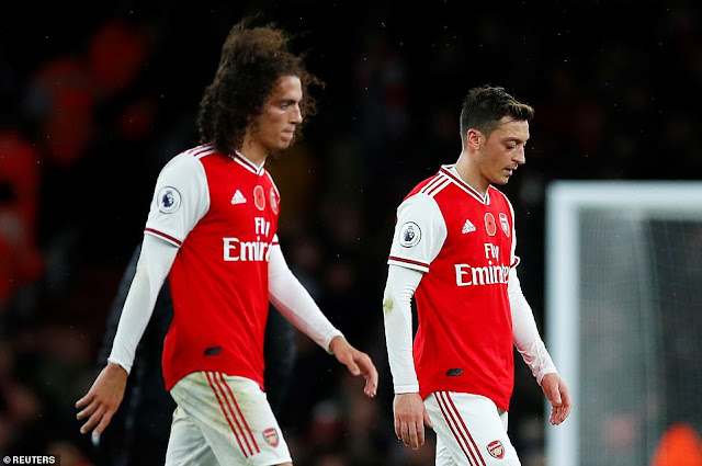 Wachezaji wa Arsenal wakirejea katikati kinyonge baada ya Raul Jimenez kuisawazishia Wolverhampton Wanderers dakika ya 76 kufuatia wenyeji kutangulia kwa bao la Pierre-Emerick Aubameyang dakika ta 21 katika sare ya 1-1 kwenye mchezo wa Ligi Kuu ya England Uwanja wa Emirates mjini London PICHA ZAIDI SOMA HAPA