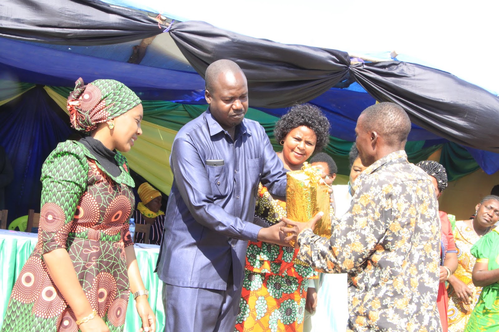 Mwenyekiti wa Halmashauri ya Wilaya ya Itigi, Ally Minja, akikabidhiwa zawadi.