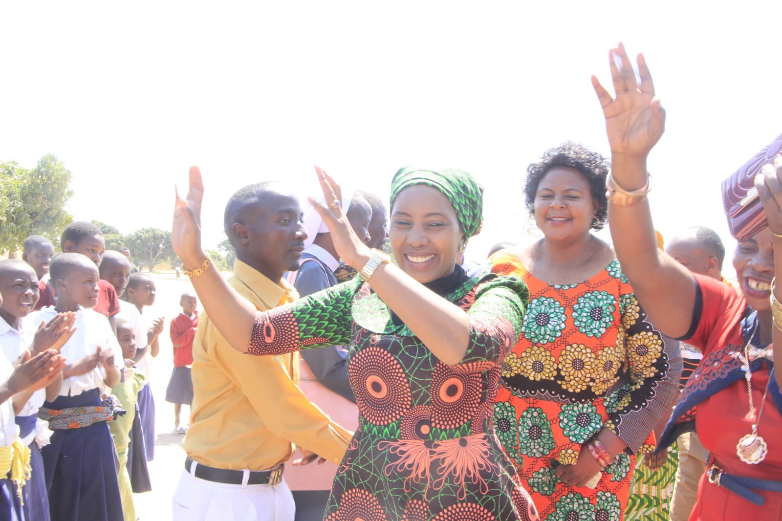 Wanafunzi wakipiga makofi wakati wa kumpokea mgeni rasmi Mbunge wa Viti Maalumu (CCM) Mkoa wa Singida, Aysharose Mattembe