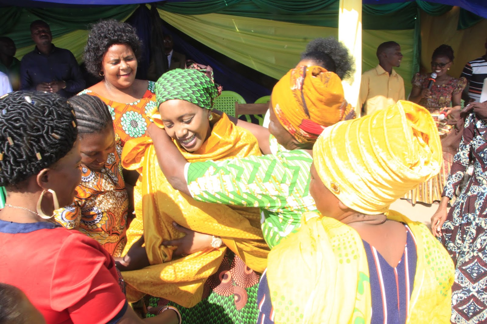 Wanawake wa UWT wakimkabidhi zawadi ya kitambaa Mbunge wa Viti Maalumu (CCM) Mkoa wa Singida, Aysharose Mattembe.