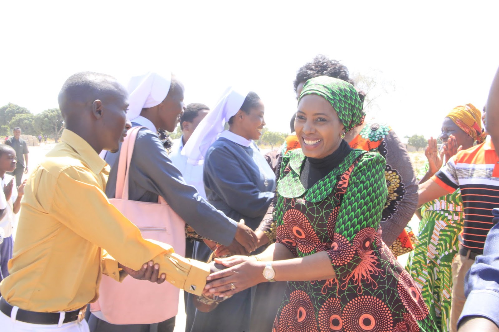 Mbunge wa Viti Maalumu (CCM) Mkoa wa Singida, Aysharose Mattembe, akisalimiana na Mwenyekiti wa kamati ya shule hiyo, Timothy Yona.