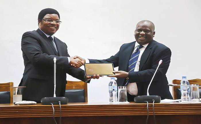 Waziri Mkuu, Kassim Majaliwa akikabidhiwa Tablets na Spika wa Bunge la Tanzania, Job Ndugai wakati la ugawaji wa tablets kwa Wabunge wote, katika Ukumbi wa Msekwa Bungeni Jijini Dodoma, Novemba 4, 2019. (Picha na Ofisi ya Waziri Mkuu)