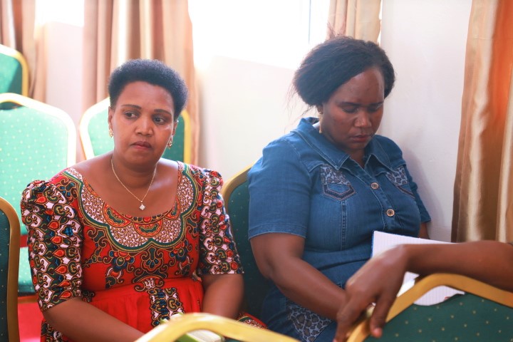 Aliyekuwa Meneja wa Chama cha Ushirika cha Akiba na Mikopo cha Arusha Kurugenzi Christina Sumaye (Kulia) akiwa na aliyekuwa karani wa SACCOS hiyo Edith Malley wakifatilia hotuba ya Waziri wa Kilimo Mhe Japhet Hasunga (Mb) kabla ya kuagiza kukamatwa kwa viongozi hao wakati wa kikao kazi kilichofanyika katika Ofisi ya Mkuu wa Mkoa wa Arusha na kuhudhuriwa pia na Mkuu wa Mkoa huo Mhe Mrisho Gambo leo tarehe 9 Novemba 2019.