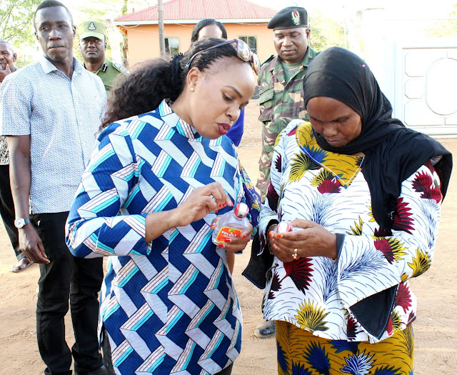 Mkuu wa mkoa wa Shinyanga Zainab Telack mkono wa kulia, akiwa na mkuu wa wilaya ya Shinyanga Jasinta Mboneko Kushoto wakiangalia Pombe hiyo Kali ya Shujaa.
