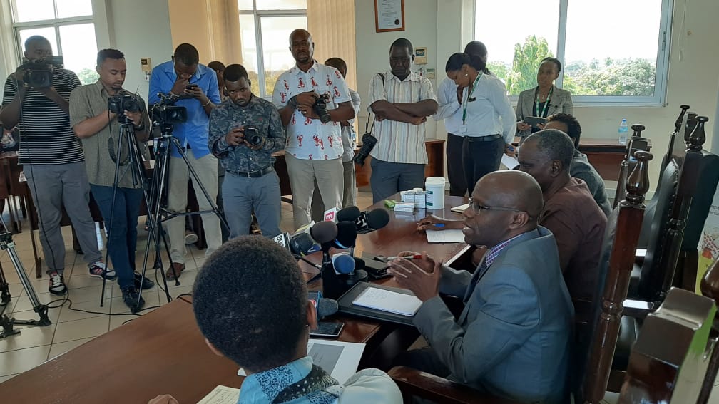 Kaimu Mkurugenzi Mkuu wa TMDA, Bw.Akida Khea akizungumza na Wanahabari leo katika ukumbi wa mkutano wa ofisi za TMDA Jijini Dar es Salaam.