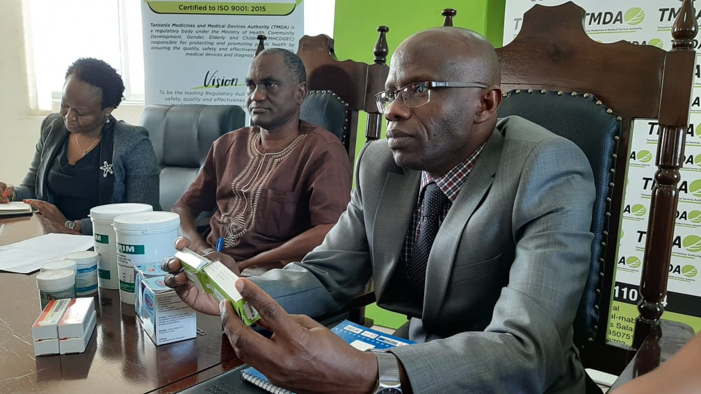 Akizungumza na Wanahabari jijini Dar es Salaam, Kaimu Mkurugenzi Mkuu wa TMDA, Bw.Akida Khea amesema kuwa katika kipindi cha Julai hadi Septemba 2019, baadhi ya dawa bandia zilizobainika na kutolewa taarifa ya kuwepo katika nchi za wanachama wa Jumuiya ya Afrika Mashariki ni pamoja na dawa aina ya Gentrisone Cream 10gm toleo namba GNTRO X030,Augmentin 625mg tables toleo namba 786627 na kapsuli za Cold caps.