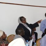 Raphael Nombo,(kulia)akibadilishana jambo na viongozi wengine mara