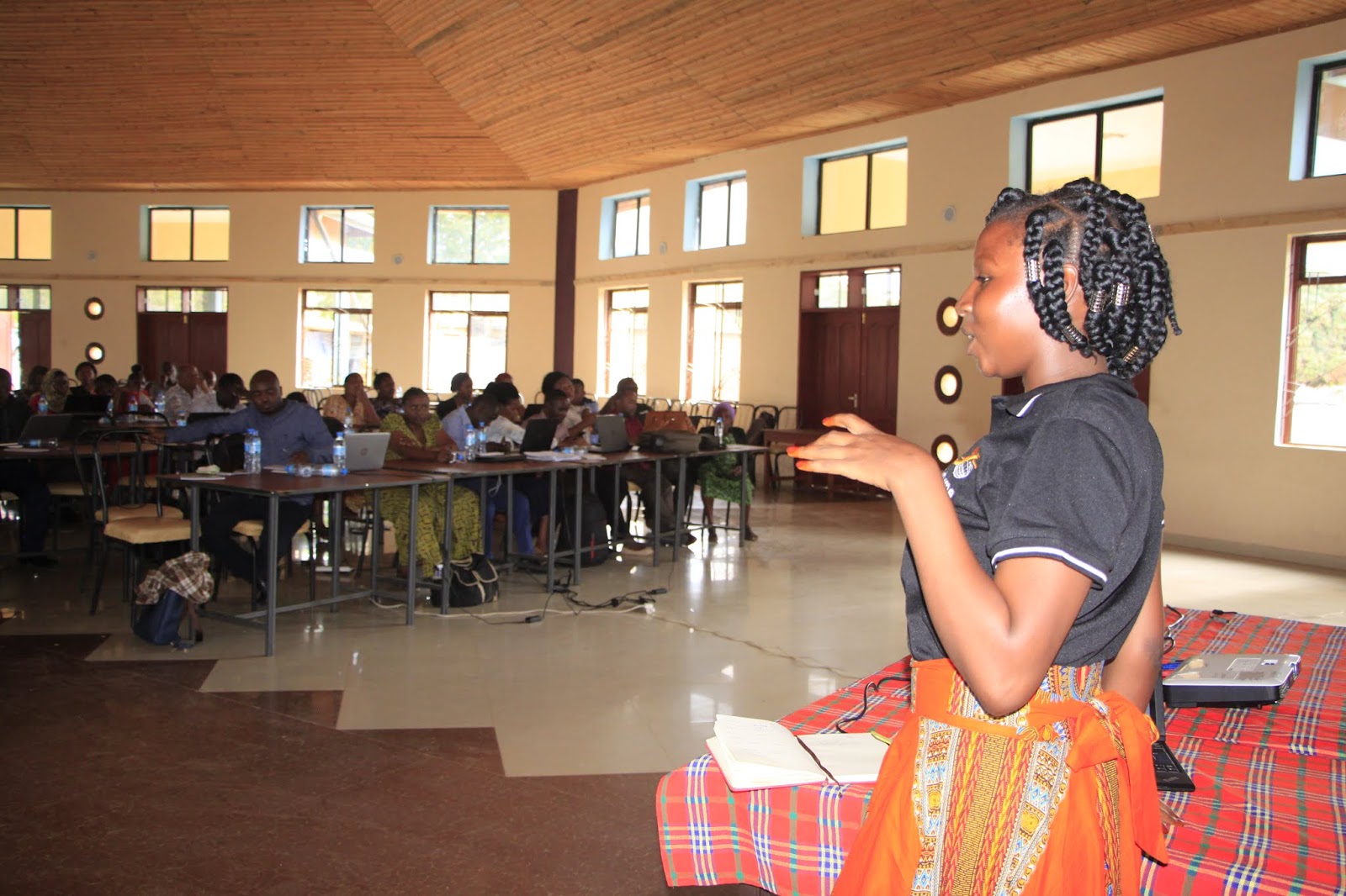 Meneja Mkoa wa Singida wa Kampuni ya Tutume, Nuru Tamimu, akitoa mada katika kikao hicho.
