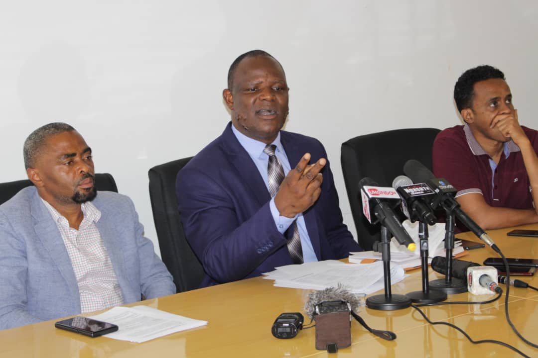 akizungumza na wandishi wa habari leo jijini Dodoma, kulia ni Naibu Waziri wa