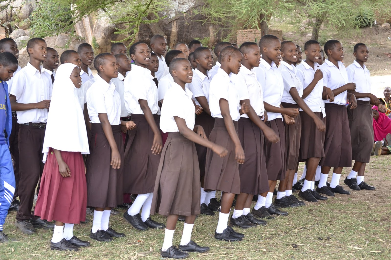 Wanafunzi wa Shule ya Sekondary Madasenga wakiimba kwenye mkutano huo.