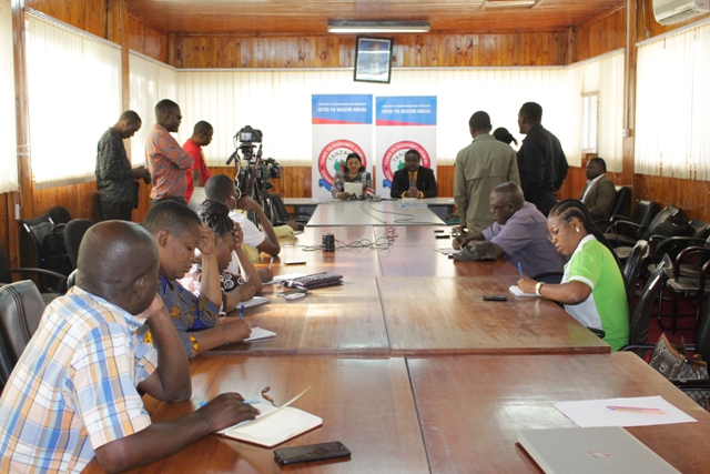 Sehemu ya waandishi wa habari kutoka vyombo mbalimbali wakimsikiliza Waziri wa Nchi, Ofisi ya Waziri Mkuu, Sera, Bunge, Ajira, Kazi na Wenye Ulemavu, Jenista Mhagama,wakati akitoa taarifa kuhusu maadhimisho ya siku ya Ukimwi Duniani yatakayofanyika jijini Mwanza Mwaka huu.