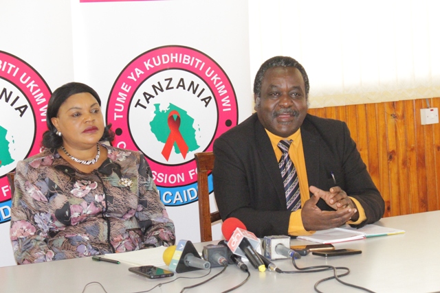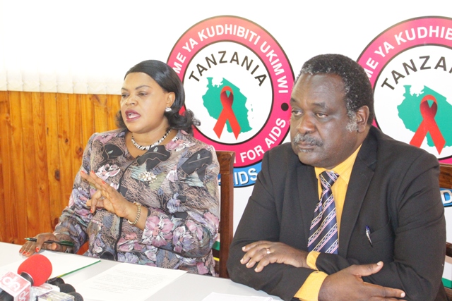 WAZIRI wa Nchi, Ofisi ya Waziri Mkuu, Sera, Bunge, Ajira, Kazi na Wenye Ulemavu, Jenista Mhagama,akizungumza na waandishi wa habari (hawapo pichani) wakati akitoa taarifa kuhusu maadhimisho ya siku ya Ukimwi Duniani yatakayofanyika jijini Mwanza Mwaka huu,kulia ni Mkurugenzi Mkuu wa Tume ya Kudhibiti Ukimwi Tanzania (TACAIDS) Dkt.Leonard Maboko.