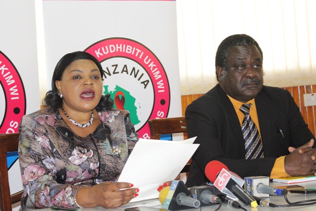 WAZIRI wa Nchi, Ofisi ya Waziri Mkuu, Sera, Bunge, Ajira, Kazi na Wenye Ulemavu, Jenista Mhagama,akisisitiza jambo kwa waandishi wa habari (hawapo pichani) wakati akitoa taarifa ya maadhimisho ya siku ya Ukimwi Duniani yatakayofanyika jijini Mwanza Mwaka huu,kulia ni Mkurugenzi Mkuu wa Tume ya Kudhibiti Ukimwi Tanzania (TACAIDS) Dkt.Leonard Maboko.