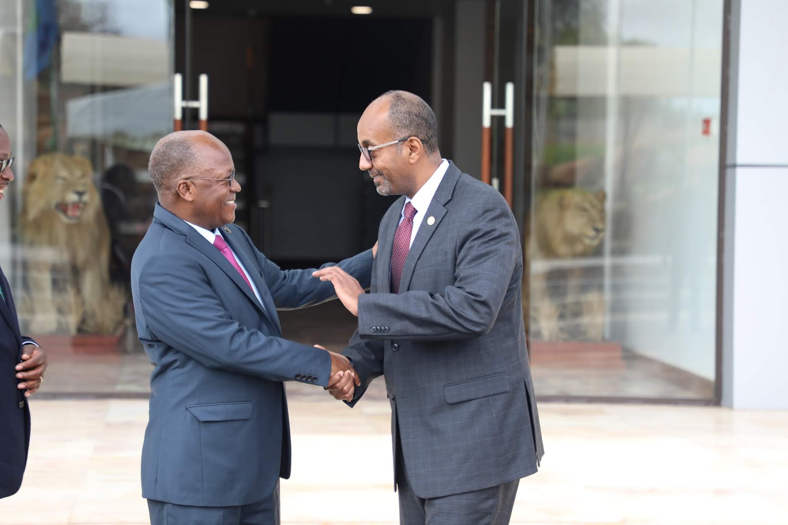 Rais wa Jamhuri ya Muungano wa Tanzania Mhe. Dkt. John Pombe Magufuli mapema leo, amekutana na kufanya mazungumzo na Rais wa Benki ya Maendeleo ya Biashara Mashariki na Kusini mwa Afrika (TDB) Bw. Admassu Tadesse ,Ikulu jijini Dodoma.