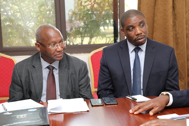 Katibu Mkuu wa Wizara ya Fedha na Mipango Bw. Doto James (kulia) na Katibu Mkuu Wizara ya Nishati Dkt. Hamis Mwinyimvua wakisikiliza kwa makini mazungumzo yaliyokuwa yakiendelea kati ya Waziri wa Fedha na Mipango Mhe. Dkt Philip Isdor Mpango (Mb) na Rais wa Benki ya Biashara na Maendeleo Mashariki na Kusini mwa Afrika (TDB), Dkt. Admassu Tadesse (hawapo pichani), Jijini Dodoma