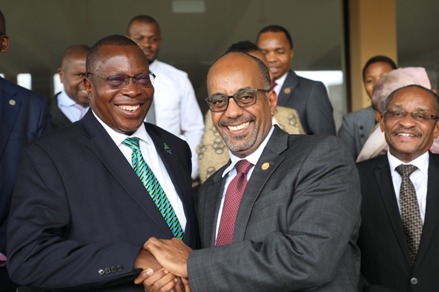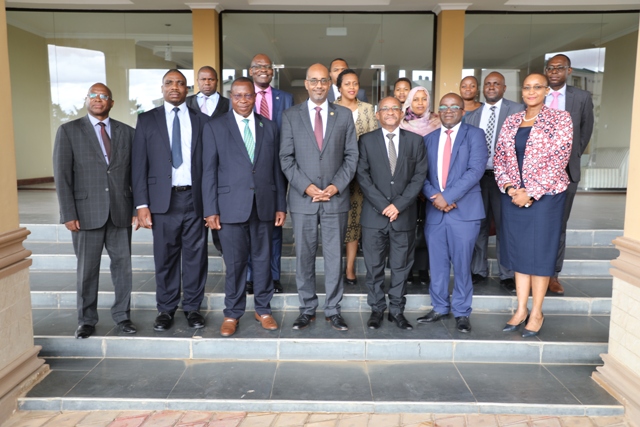 Ujumbe kutoka Tanzania ukiongozwa na Waziri wa Fedha na Mipango Mhe. Dkt. Philip Isdor Mpango (Mb) (wa tatu kushoto) akiwa katika picha ya pamoja na ujumbe kutoka Benki ya Biashara na Maendeleo Mashariki na Kusini mwa Afrika ulioongozwa na Rais wa Benki hiyo Dkt. Admassu Tadesse (wa nne kulia) jijini Dodoma.